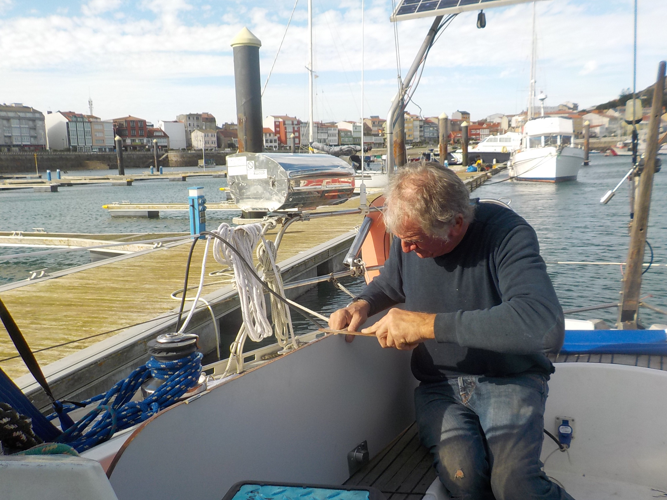 Christian réinstalle les charnières qui nous avaient lâché
